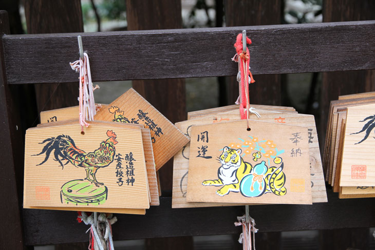 Neben den üblichen jahreszeitlichen Reinigungszeremonien, wie Saidan-sai am 1.1., Shichi-go-san am 15.11. und Toshikoshi no Oharae am 31.12., finden an diesem Schrein ein paar typische und besondere Ereignisse statt: Am 11. Februar ist das Amazake-Festival zum Gedenken an den vom Berggott gebrauten Amanotamu-zake. Am ersten Sonntag im März feiert man hier die Pflaumenblüte, am dritten Sonntag im April die Kirschblüte (Sakura-Fest, Gagaku-Fest). Am 3. Mai ist das Shinko-Fest, bei dem ein tragbarer Schrein (Mikoshi) durch das Viertel getragen wird. Am dritten Sonntag im Juni hat Kaiserin Danrin ihren Festtag, und am letzten Sonntag im August Kaiser Saga, mit Tanzvorführungen, Musik und Wettbewerben für die Jugend.