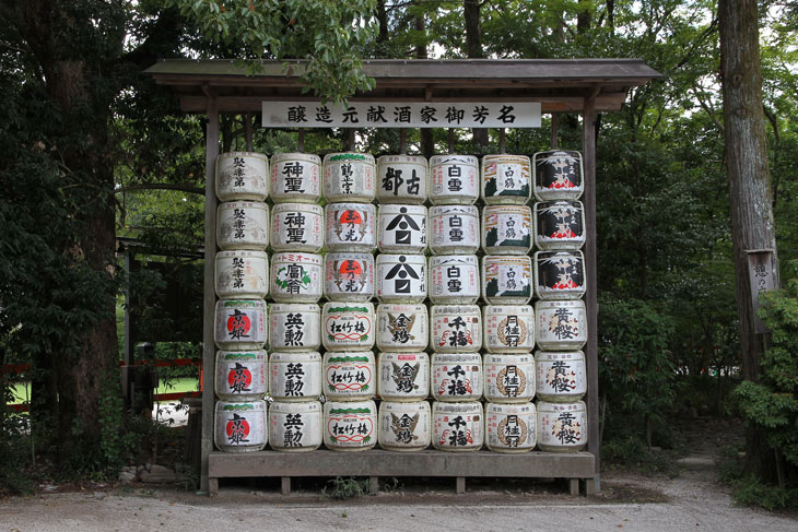"Regal" für gespendete Sake-Fässer (Sakedaru, Kazaridaru)