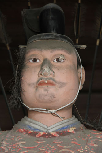Kamon des Schreins auf den Toren der Orozessionswagen-"Garage" (Mikoshi-gura)