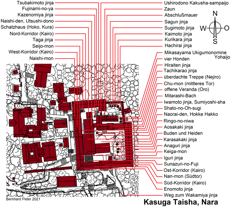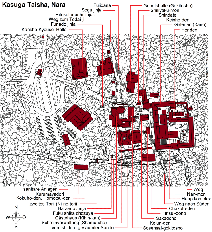 dem interaktiven Plan: https://www.kasugataisha.or.jp/en/guidance_en/ - Geschichte: https://www.kasugataisha.or.jp/en/about_en/
