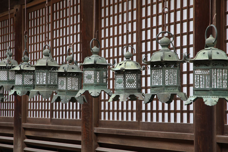 Bronzelaternen an der Westseite der Halle Naoraiden