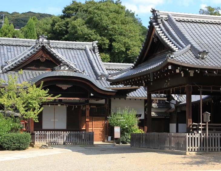 Blick von Südwesten. Im Hintergrund die Haupthalle Honden mit dem Haiden davor.