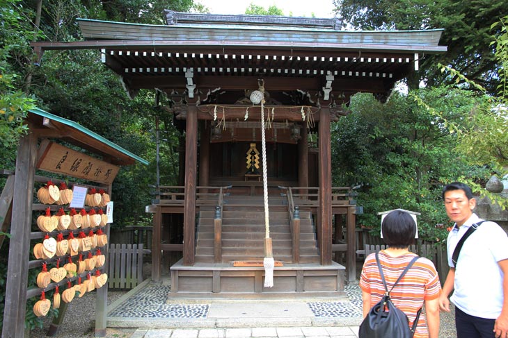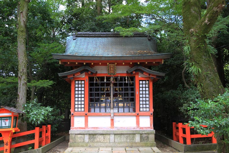 Nebenschrein Utsukushii Gozen-sha: Auf dem Gelände des Yasaka-Schreines befindet sich dieser Nebenschrein, den man aufsucht, um für mehr körperliche Schönheit zu beten, sowohl im übertragenen Sinn für ein besseres, reineres und schöneres Herz, aber auch ganz realitätsverhaftet für reinere Haut und glänzenderes Haar.