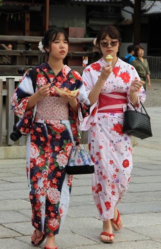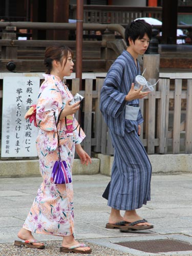 Für den Schreinbesuch kleidet man sich gerne traditionell, so sieht man auffällig viele Damen in der Yukata.