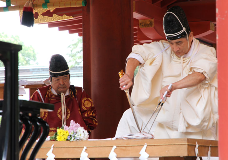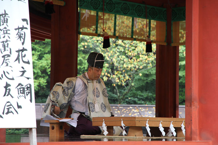 Kamakura (Präf. Kanagawa), Tsurugaoka Hachiman-gu, Teil (3): Messer-Zeremonie im Maiden, 1. Teil