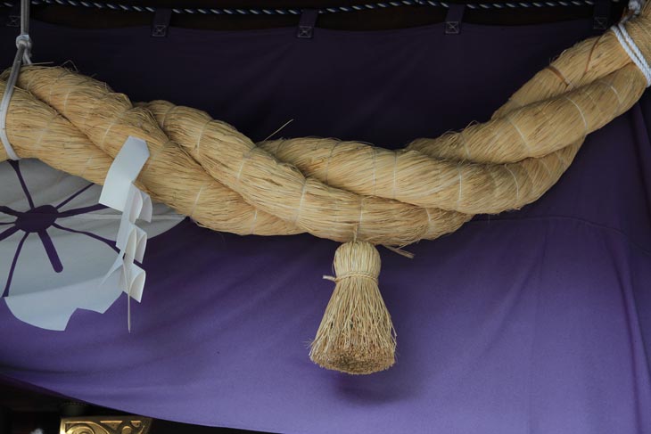 Ein Shimenawa mit Shide überspannt den Eingang.