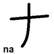 Es gibt aber noch einen Buchstaben zusätzlich, das isolierte N ohne Vokal. Es ist die einzige Silbe, die nur aus einem Konsonanten besteht und auch gesprochen lückenlos vom nächsten Konsonanten gefolgt wird. Damit hat man die Möglichkeit, das N zu längen wie in Ko-n-ni-chi-wa oder zwei Konsonanten aufeinandertreffen zu lassen wie in Ko-n-ba-n-wa. Beim N gibt es eine äußerst gefährliche Verwechslungsgefahr mit dem SO, die beiden sehen fast genau gleich aus. Einziger Unterschied: Der lange Strich wird beim N von unten nach oben gezogen, ist also unten dick und oben dünn. Beim SO ist es umgekehrt. Der lange Strich ist beim SO etwas steiler, aufrechter, beim N etwas flacher, liegender. Beim Schreiben mit Kugelschreiber hilft man hier am besten unten mit Serifen nach.