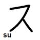 Beim TSU ist es wichtig zur Unterscheidung vom SHI: Man schreibt horizontal von links nach rechts und biegt dann mit dem langen Strich in Gegenschräge nach unten. Dabei bilden die Anfangspunkte aller drei Striche eine Horizontale. Der lange Strich geht nicht bis ganz nach links. Wenn man die Oberkante verbindet, entsteht ein horizontaler Strich, kein schräger. Beim SHI ist es andersherum. Der Schrägstrich ergibt sich, wenn man die linken Endpunkte verbindet.