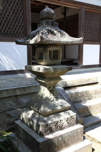 Abb. links: Steinlaterne vor dem Myouken-do. Abb. rechts: Oberhalb der Mönchsquartiere am Hang, Schrein für 2 Poeten.