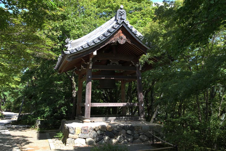 Über eine steile Treppe, rechts und links von wunderschönem Moos unter den Ahorn-Bäumen begleitet, gelangt man zur Haupthalle (Hondo). In deren Nähe steht der Glockenturm, der 1642 unter Nissen, dem vierten obersten Priester des Tempels, erbaut wurde. Weil die originale Glocke im 2. Weltkrieg eingeschmolzen wurde, erhielt der Tempel 1973 eine neue Glocke. Die während der Keicho-Ära (1596-1615) erbaute Haupthalle wurde ursprünglich genausowenig wie das Nio-mon für den Jojakko-ji konstruiert, sondern stammt aus einem anderen Kontext. In der Amtszeit von Nisho, dem zweiten obersten Priester des Jojakko-ji, wurde mit der finanziellen Hilfe von Kobayakawa Hideaki die ehemalige Kyakuden (Gästehalle) des Schlosses Momoyama hierhin versetzt. Die Halle besitzt ein zweischichtiges Dach im Hon-gawara-Stil, also mit abwechselnd flach gebogenen (Hira-gawara) und halbrunden Ziegeln (Maru-gawara). Das entspricht dem Ursprungszustand, aber 1932 kam es anläßlich von Reparaturarbeiten zu einer Änderung in den Hira-gawara-Stil mit nur flachen Ziegeln ohne die typischen Rippen. Wenn man sich nun nach rechts wendet, gelangt man zu den Mönchsquartieren.
