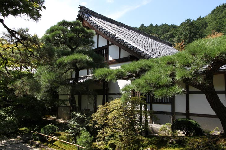 Mönchsquartiere mit kunstvoll gezogenen Kiefern.