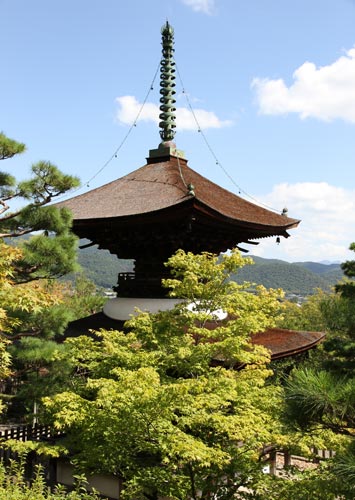 Taho-to (Taho-tou), die zweistöckige Pagode, steht hoch am Hang über der Haupthalle.