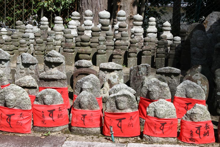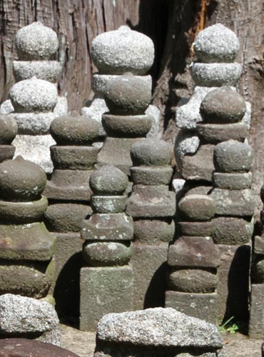 Gorin-to (Gorin-tou) = "Fünf-Ringe-Türme", davor mehrere Reihen Jizo (Jizou)