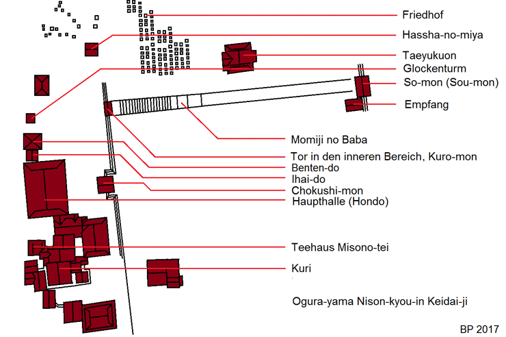 Der Nison-in liegt gleich nördlich des in der Anlage sehr