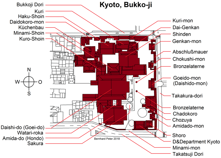 Bukko-ji (2): Amidado-mon und Goeido-mon - Bukko-ji (3): Chokushi-mon, Genkan-mon und weitere Bauten - Bukko-ji (4): Goeido (Daishido) - Bukko-ji (5): Übergangsbereich mit Watari-roka - Bukko-ji (6): Amidado (Hondo)