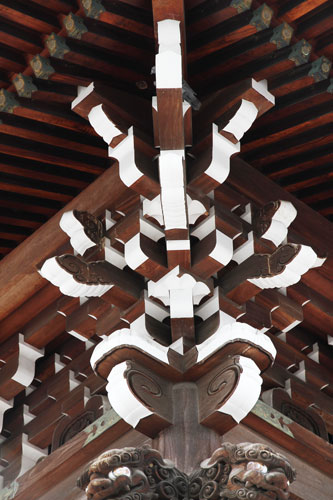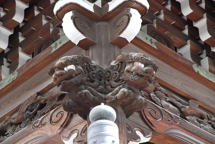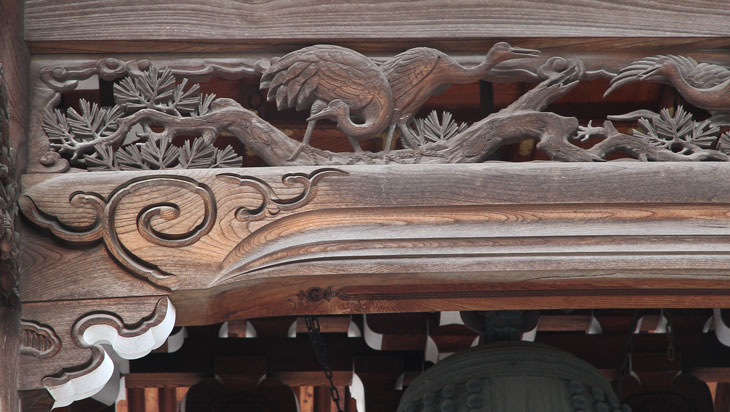 Glockenturm (Shoro) mit Details der Schnitzereien