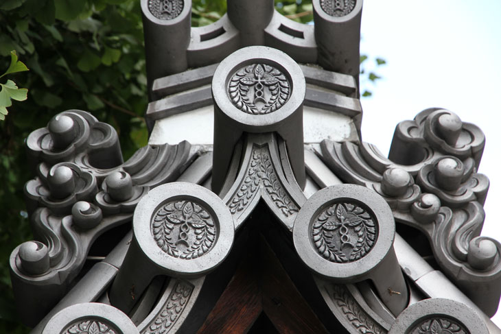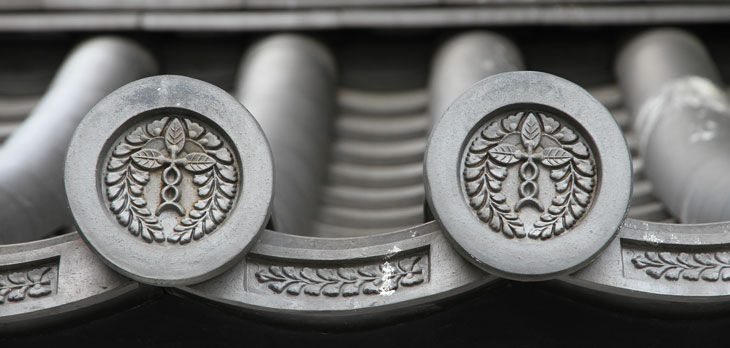Ziegel mit Kamon des Tempels an der Mauer (Tsujibei)