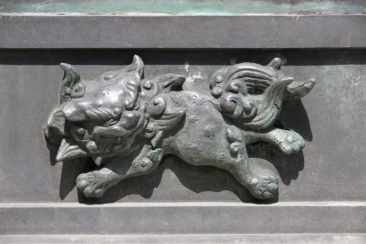 Bronzelaternen vor dem Goei-do (Daishi-do), Detail vom Sockel