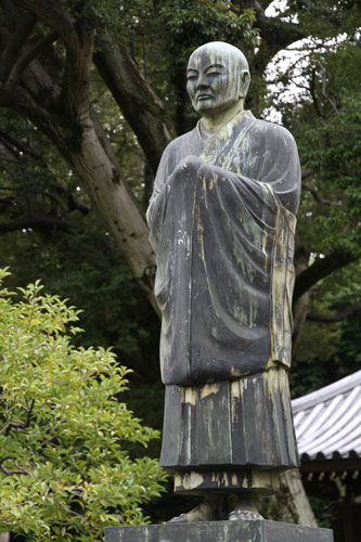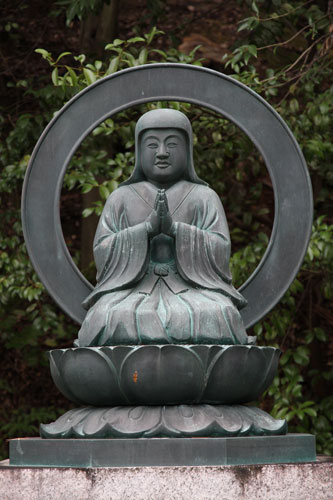 Statuen rechts und links des Zuweges zum Daishi-do. Abb. links: Kobo-daishi-zo. Abb. rechts: Ken-ji daishi-zo.