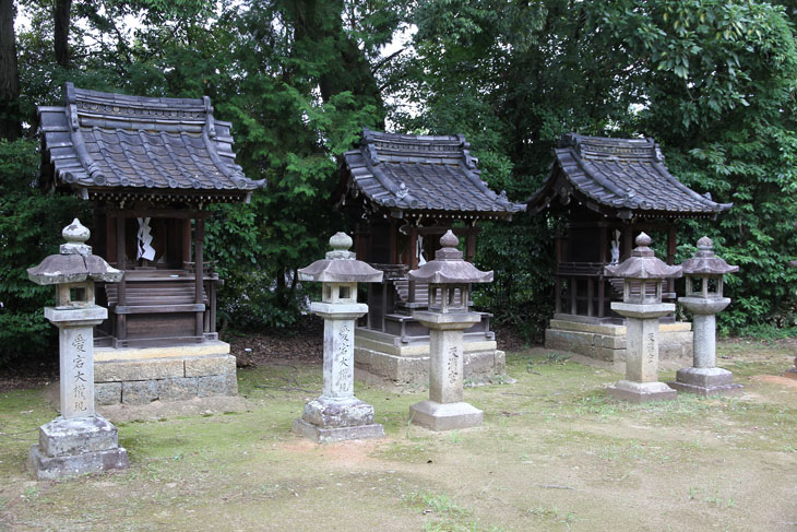 drei kleine Schreine, an der Westseite des Nordostbereiches: Hakusan dai gongen, Tenmangu und Atago dai gongen.