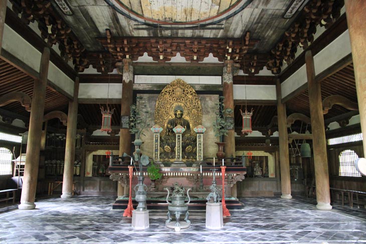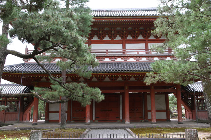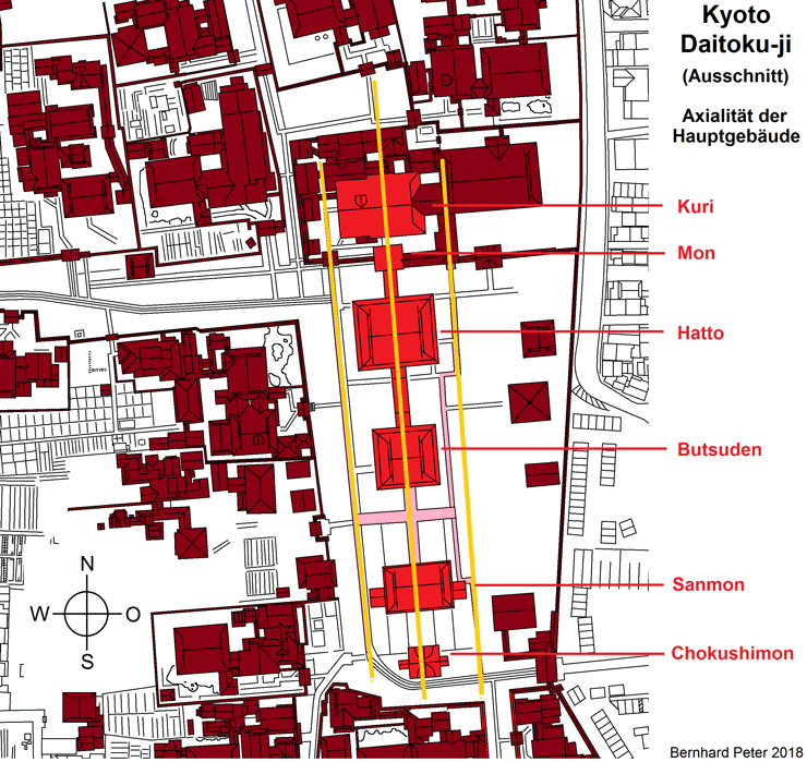 Anordnung von Sanmon, Butsuden und Hatto wieder: Sie stehen in