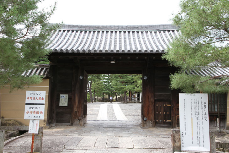 Erreichbar ist der Tempelkomplex am besten über den U-Bahnhof Kitaoji der Karasuma-Line. Von dort folgt man in südwestlicher Richtung der Kita Oji Dori ca. 2,2 km bis zum ersten Tor. Kitaoji ist aber auch ein wichtiges Busterminal, und die Kita Oji Dori ist eine Hauptroute vieler Busverbindungen. Am Bussteig G findet man die Linien in Richtung Westen, z. B. den Bus Nr. 204 zum Kinkakuji, den Bus Nr. 206 zum Bahnhof Kyoto, Ausstieg jeweils Daitokuji-mae. Ebenso kann man auf der Kita Oji Dori die Linien 1, 8, 101, 102, 204 und 205 nehmen, tagsüber fährt im Schnitt alle 2 Minuten irgendein Bus diese Straße entlang, der einen die zwei Haltestellen mitnehmen kann. Wenn man direkt vom JR-Bahnhof Kyoto aus per Bus anreist, nimmt man ebenfalls die Nr. 206 am Bussteig A3 zum Kitaoji Bus Terminal via Daitokuji.