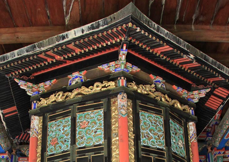 Im Innern sind die Balken leuchtend bunt angemalt.