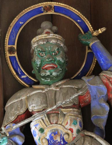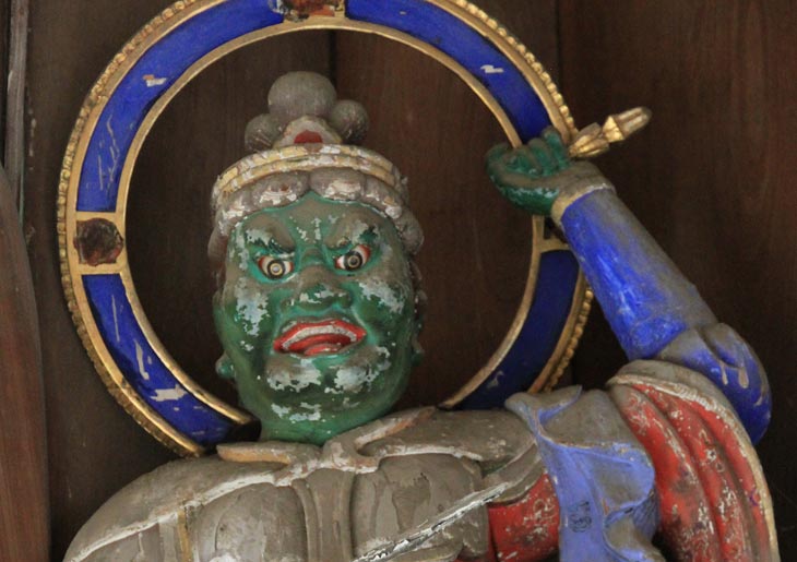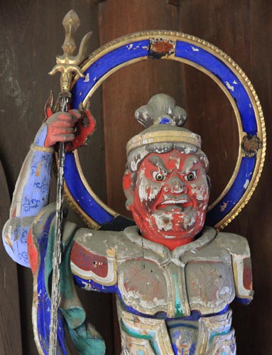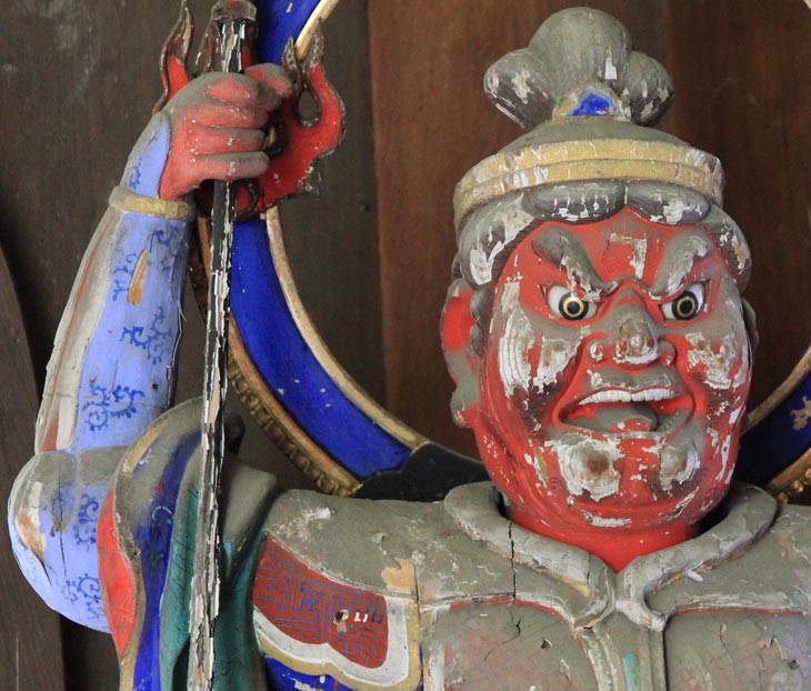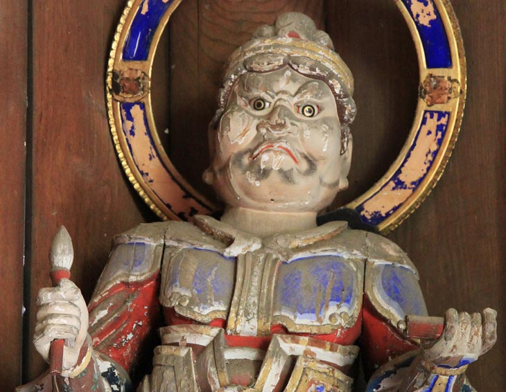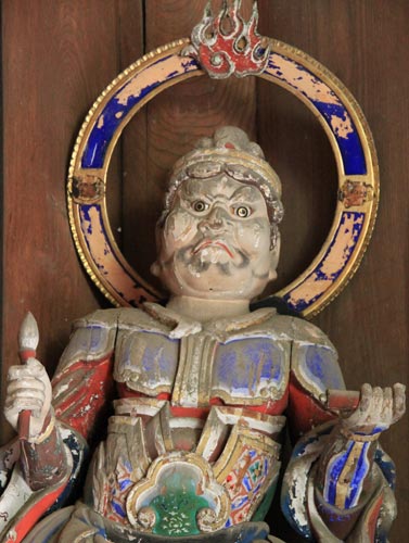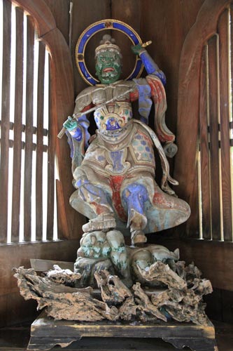 In den vier Ecken der Halle stehen die Shitenno, die vier Himmelskönige, als Wächter der Lehre.