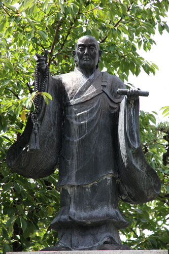 An Nichizo Shonin wird auf dem Tempelgelände mit einer großen