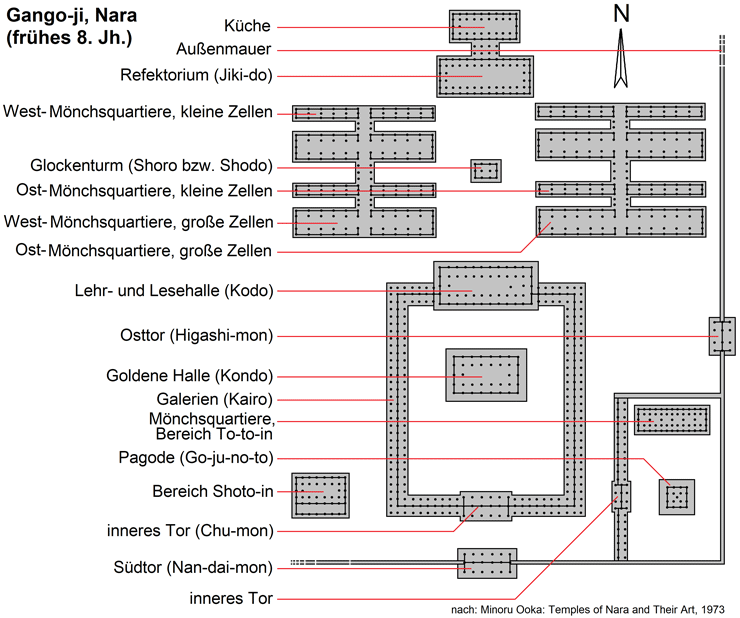 Tempelanlage (Garan) der Nara-Zeit zu tun. Der Gango-ji war