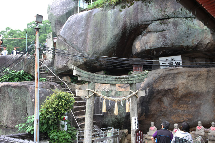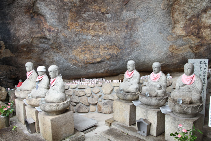 Ein besonderer, 15 m hoher Felsen heißt Tama no Iwa, in ihn ist eine Replik eines Edelsteins über einem Loch eingesetzt worden. Früher soll hier ein echter Edelstein eingelassen gewesen sein, der der Legende nach nachts leutete. Heute ist es ein kugelförmiger Stein, der mit etwas Abstand vom Loch in einer Halterung mit drei Beinen verankert ist. Auch die Felsen sind mit Reliefs versehen; eines ist kreisförmig mit Sanskrit-Inschrift, dem Dainichi Nyorai gewidmet. Ein anderes Felsrelief zeigt eine Amida-Triade, drei Buddha-Figuren in flach ausgeschlagenen Nischen.