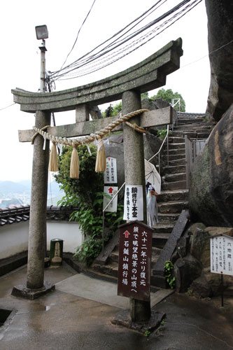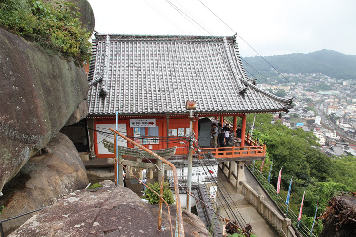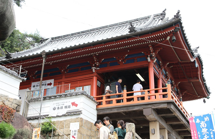 Es wird angenommen, daß dieser Tempel von Kobo Daishi Kukai im Jahr 806 gegründet wurde. Seine Bronzestatue ist auf dem Tempelgelände zu finden. Auch heute noch gehört der Tempel zur Richtung des Shingon-Buddhismus. Deshalb gibt es hier eine Halle zur Verehrung des Gründers, die Daishi-do, in der eine große Statue von ihm aufgestellt ist. Wenn man im Gegenuhrzeigersinn um den Berg herumgeht, kreuzt man erst die Route der Seilbahn, dann kommt man zu weiteren Gebäuden. Ganz im Norden liegt die Senko-ji Kagamiiwa.