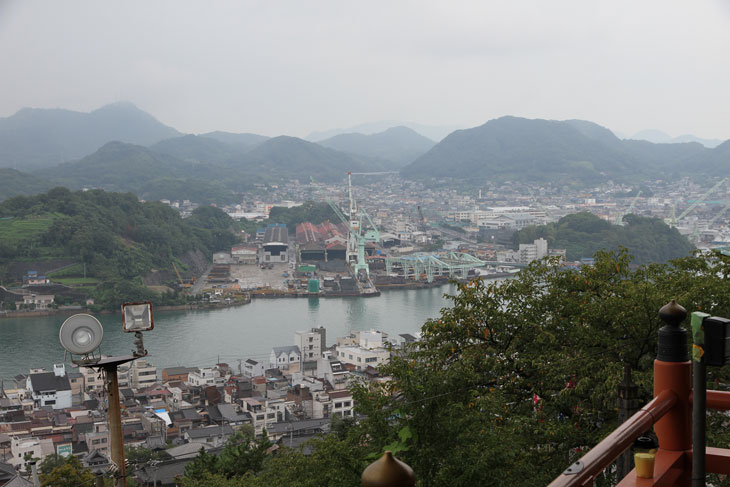 Blick vom Senko-ji auf die Hafenanlagen und die Insel Mukaishima