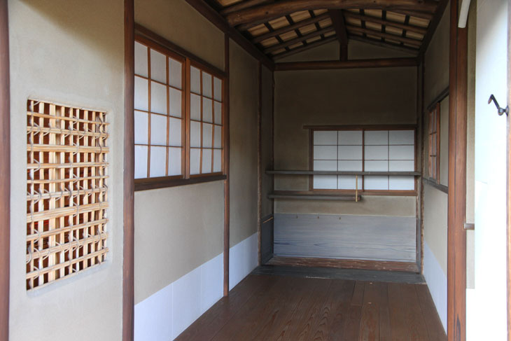 im Shoin, Photo 2017. Die roten Filzdecken zeigen an, daß hier Tee ausgeschenkt wird.