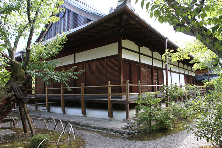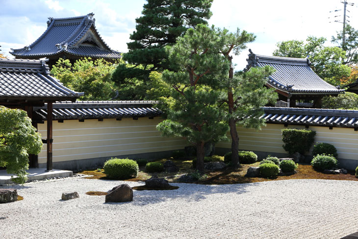 Südlich der Haupthalle befindet sich noch ein Zen-Trockengarten (Karesansui) mit weiten weißen Sandflächen, Moospolstern und Steinsetzungen, mit ein paar Kiefern und wunderbare Herbstfärbung aufweisenden Ahornbäumen vor der südlich abschließenden Mauer, in der als drittes Tor ein Karamon eingelassen ist. Dieser Garten wird als Hojo-teien bezeichnet (Houjou-teien), Garten der Abtsresidenz, oder als Hojo-nantei, Südgarten der Abtsresidenz.