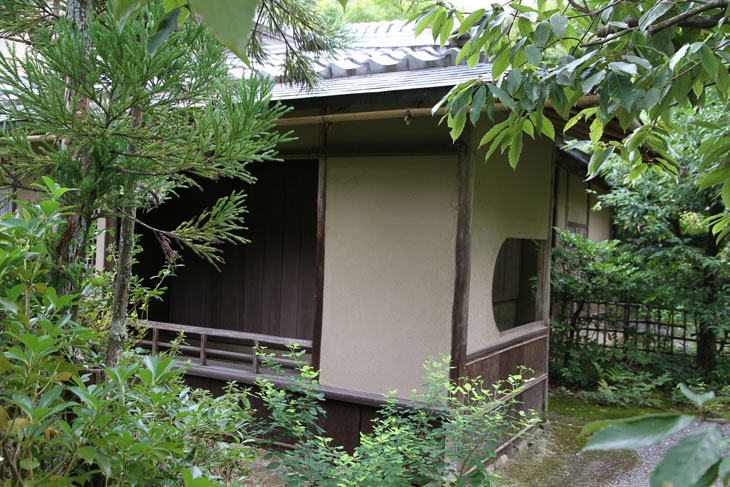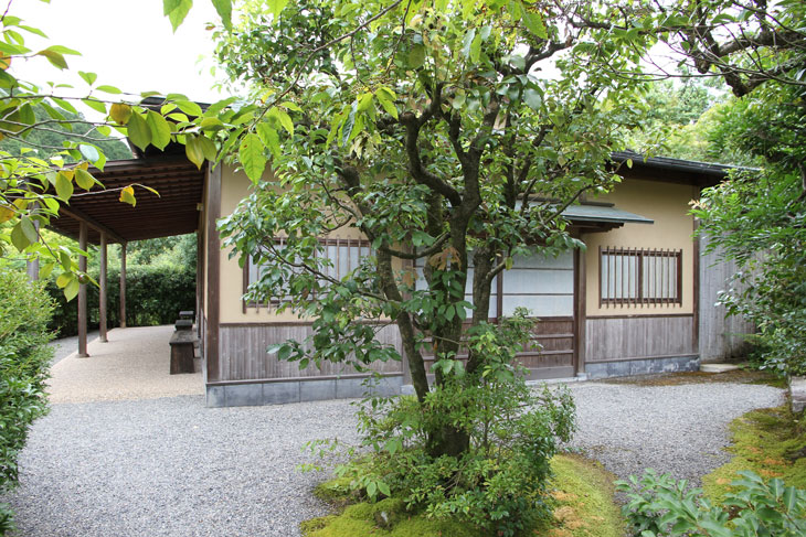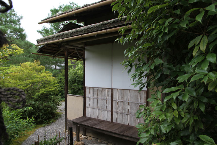 Das Gelände mißt 200 m in Nord-Süd-Richtung und bis zu 100 m in West-Ost-Richtung. Der Tempel liegt abseits der Touristenmassen und kennt nur zwei jahreszeitliche Besucherhöhepunkt zur Kirschblüte und im Herbst, weil er insbesondere für seine Ahornfärbung berühmt ist. Abseits dieser Hauptsaison Ende November bis Anfang Dezember ist es hier ruhig, im Spätsommer ist man hier alleine. Der Eintritt ist vergleichsweise günstig, man bekommt im sich bis zum Tal des Tenjin-Flusses erstreckenden Garten eine große Vielfalt der Tee-Architektur zu sehen, aber man kommt in die Teehütten nicht hinein, und man kann auch nicht hineinschauen. Schmale Wege leiten den Besucher durch das große Gelände, in dem aber gar nicht so viel Platz ist, weil die Gartenanlagen zu dichtem Baumbestand hochgewachsen sind und wenig freie Sicht auf die Teehütten besteht. Vom Typ her ist der Garten kein Zen-Garten, aber trotzdem eine idyllische und wunderschöne Anlage. Aber man darf nicht zu viel erwarten: Man ist in der Nähe einer faszinierenden Vielfalt von Teekultur-Architektur, die Hüttchen sind zum Greifen nah, und dennoch sieht man sehr wenig davon, wegen der querliegenden Absperr-Bambusrohre oder wegen des Bewuchses.