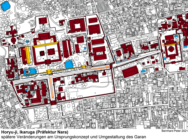 Abb.: Umbau des Asuka-zeitlichen Horyu-ji zum späteren Horyu-ji