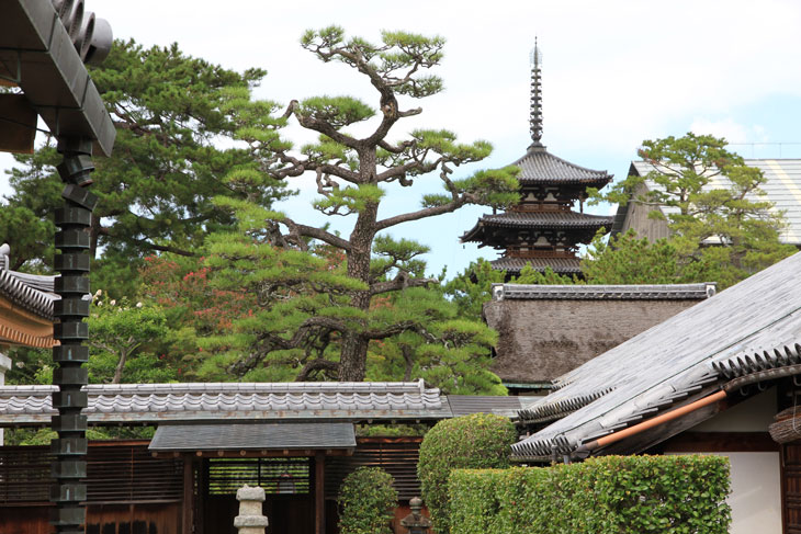 Blick vom Verwaltungsgebäude über den Saion-in hinweg auf die Pagode