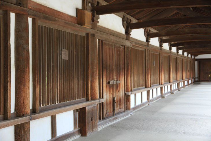 der neuere Korridor-Abschnitt der Norderweiterung seitlich der großen Lehrhalle, links Kyozo angeschnitten