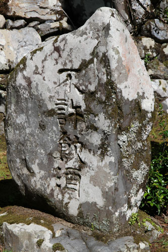 großen Findling, in den vertikal die Worte "Toganoo-san