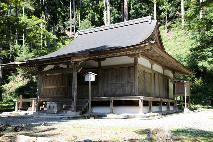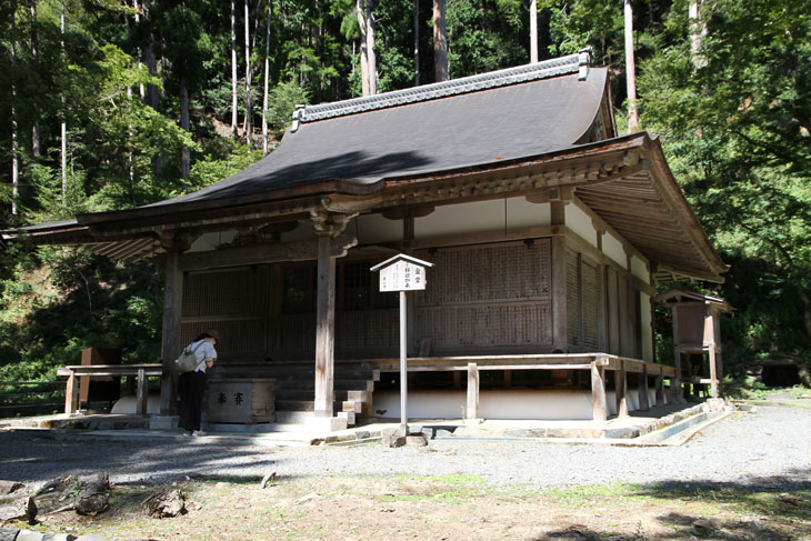 Der zweite Punkt der Enttäuschung ist die Realität, die man nicht auf den schönen Photos mit der herrlichen Aussicht in die Baumkronen sieht: Wenn man tatsächlich da oben auf der Veranda sitzt, hört man nicht nur die allgegenwärtigen Zikaden kreischen, sondern auch im Tal unterhalb des Tempels die Durchgangsstraße (Shuzan Kaido, Nationalstraße 162) mit dem nach oben schallenden Verkehrslärm - eine meditative Stimmung mag da nicht so wirklich aufkommen. Selbst an einem Sonntag ist der Verkehr nennenswert, die so oft beschworene "poetische Imagination" auf der Veranda kommt nicht auf. Schöner Blick gewiß, aber laut.
