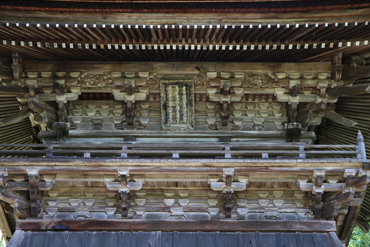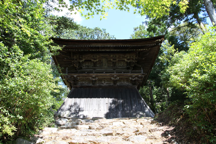 Der ganz aus Holz gebaute Glockenturm wurde 1623 im Stil Ro-zukuri errichtet; er besitzt ein Untergeschoß mit starker Böschung, im Obergeschoß eine umlaufende Galerie und ein breit ausladendes Irimoya-Dach. Die Glocke selbst (Bonshou, Sanzetsu no kane) ist Heian-zeitlich und wurde 875 gegossen; sie ist als Nationalschatz eingestuft. Sie besitzt eine Inschrift von Fujiwara no Toshiyuki und ist exakt auf den 23.8.875 datiert. Die Höhe beträgt 1,48, der Durchmesser der Öffnung 80,5 cm. Man kann sie aber derzeit aufgrund des schlechten Zustandes des Turmes nicht zu sehen bekommen.