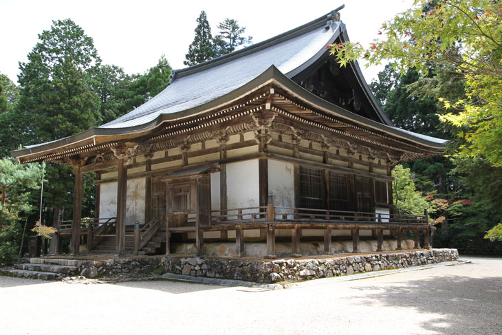 Im Südwesten dieses Bereichs steht versteckt am Rand, schon halb unter den Bäumen, die Halle Daishi-do (große Priesterhalle), die 2023 wegen Renovierung eingerüstet war. Sie trägt ein Irimoya-Dach und ist mit Holzschindeln gedeckt. Das Gebäude stammt aus der Azuchi-Momoyama-Zeit und der frühen Edo-Zeit und ist als wichtiges Kulturgut eingestuft. Seinerzeit ersetzte diese Halle das Haus von Kuukai (genannt Noryo-bo) aus seiner Zeit im Jingo-ji. Innen befindet sich in einem Miniatur-Schrein eine spät Kamakura-zeitliche Darstellung des Mönches Kobo (wichtiges Kulturgut, 1302) im Itabori-Stil (136,7 cm hoch, 84 cm breit). Das tatsächliche Alter dieser Halle läßt sich nur ungenau feststellen; es ist kein Baudatum überliefert. Einerseits war es das einzige Gebäude, das den Onin-Krieg überlebt hat. Andererseits wurde diese Halle danach erneuert, spätestens im Zuge der umfassenden Wiederherstellung am Anfang der Edo-Zeit.