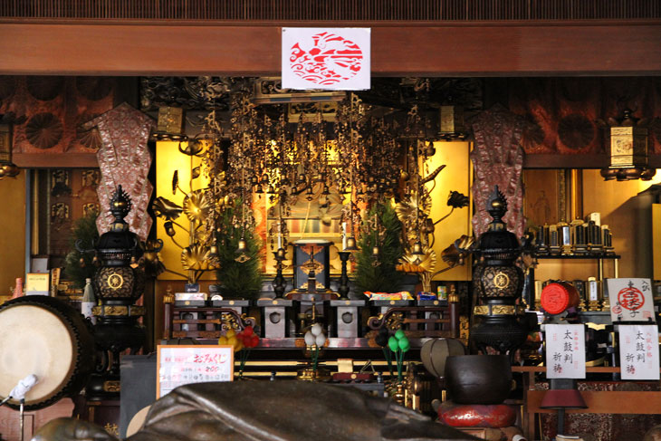 Die Besonderheit dieses Tempels ist eine liegende Figur von Kobo Daishi (Ne-kobo-san): Direkt vor dem Eintretenden steht in der Halle ein erhöhtes Lager mit Futon und Kopfkissen, und darauf ist eine liegende Bronzefigur gebettet, wie im Schlafe (ne -> neru = schlafen). Im Kopf dieser Figur befindet sich ein winziges bißchen Asche von Buddha, (O-shari-san), das man vom To-ji in Kyoto erhalten hat, der seinen kostbaren Besitz brüderlich mit dem Daishi-ji geteilt hat. Pilger berühren die Figur am Kopf oder Körper, damit ihre Gebete "Namu daishi henjou kongou...." erhört werden. Vor dieser Statue gibt es eine grüne Kristallkugel (Omokaru-ishi), der magische Kräfte nachgesagt werden.