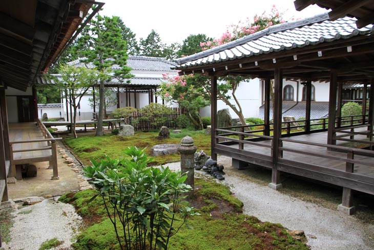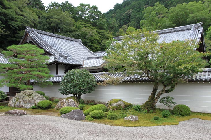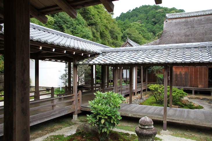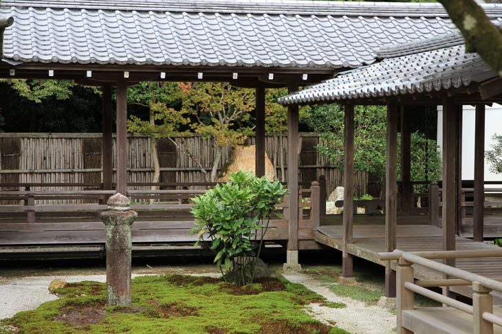 Hojo-teien mit Blick auf Genkan und Honbo. Blick nach Südosten.