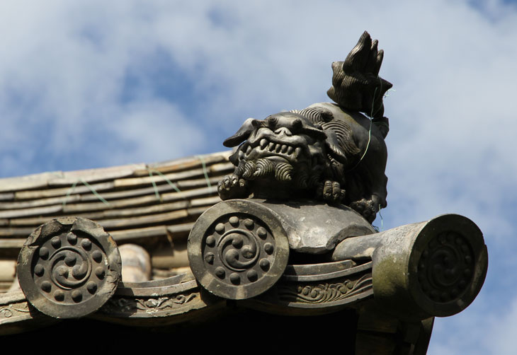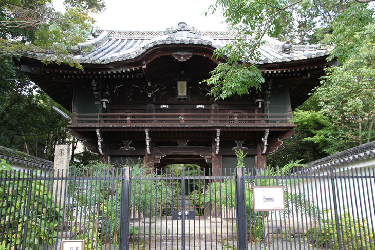 Die sechsräumige Haupthalle und ein nicht mehr hier vorhandenes Karamon stammen von der auseinandergenommenen Burg Fushimi. Die Gebäude wurden 1627 hierhin versetzt. Besagtes Tor wurde in der Meiji-Zeit in den Hokoku-Schrein versetzt, Teil der Politik der Meiji-Herrschaft, die buddhistischen Tempel zu schwächen, und sei es durch Raub nicht nur ihres Grundbesitzes, sondern auch ihrer Kunstwerke, und die Shinto-Schreine zu stärken. So ändern sich die Präferenzen: Die Burg Fushimi wurde von Toyotomi Hideyoshi erbaut, um Kyotos Südostflanke zu schützen. Die Burg spielte eine wichtige Rolle bei der Machtergreifung durch Tokugawa Ieyasu. Und selbiger ließ sie abtragen, zum einen, weil er den Einwohnern keine Chance geben wollte, sich der Befestigung gegen ihn selber zu bedienen, zum anderen, weil die Erinnerung an Toyotomi Hideyoshi klein gehalten werden sollte. In der Meiji-Zeit war es umgekehrt: Toyotomi Hideyoshi wurde wieder aus der Geschichte als Held und zweiter der drei Reichseiniger hervorgeholt, und ihm wurde ein prächtiger Schrein erbaut, und man war glücklich, dafür ein Originalstück der von ihm einst errichteten Burg zu "bekommen". Zugleich war es ein politisches Instrument, den bis dahin mit höchster Achtung behandelten Tempelkomplex des Nanzen-ji im Prestige zu schmälern.