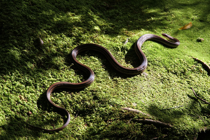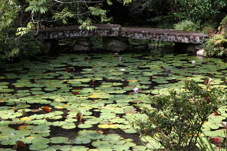 Dahinter befindet sich eine sehr große und weitläufige Anlage mit großem Garten. Der Gartenteich (Benten-chi) wird von Wasserschildkröten bevölkert; und der ganze Park ist eine großartige Naturoase mit ganz unterschiedlich durchgestalteten Bereichen, von maximal arrangierter Inszenierung bis zu üppiger und wilder Natur. Schildkröten, Libellen, Nattern - das ist ein einzigartiger Lebensraum voller Tiere, und es lohnt sich, auch darauf zu achten, was hier alles lebt. Der Garten wurde zwischen 1611 und 1632 angelegt. Er macht sich das Prinzip der "geborgten Landschaft" (Shakkei) mit der Kulisse der im Süden und Osten liegenden Hügel zunutze.