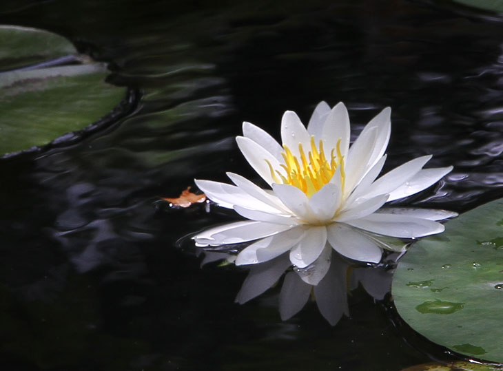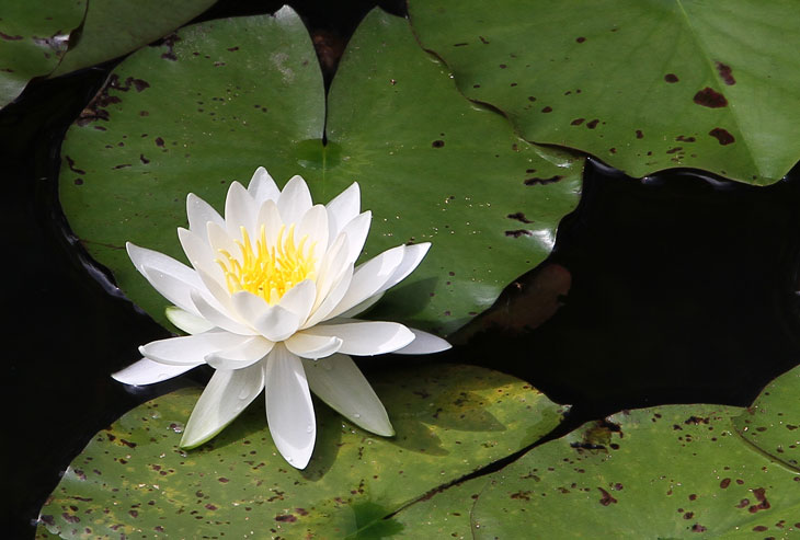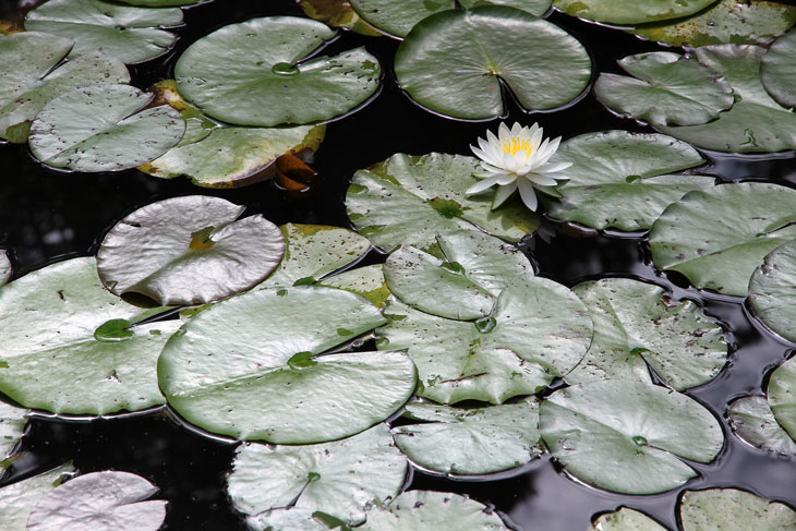 Holzplankenweg durch den Teich mit versetzten Elementen