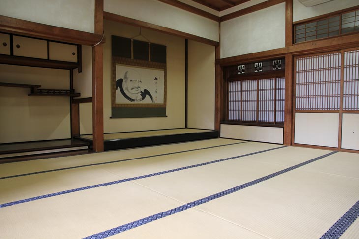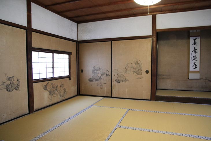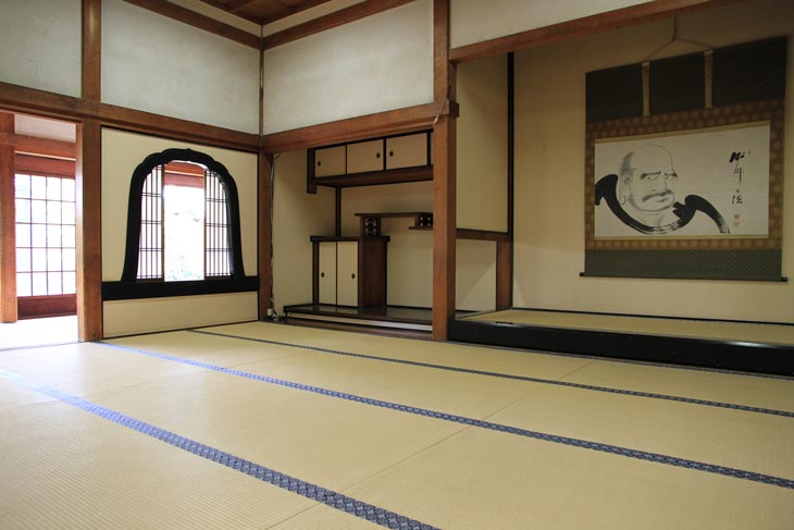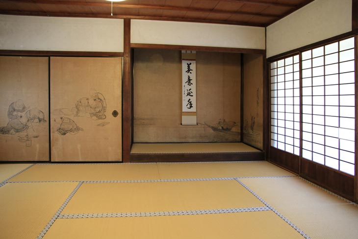 Innenraum mit Shoji und Fusuma, im Alkoven Hängebild mit Kalligraphie