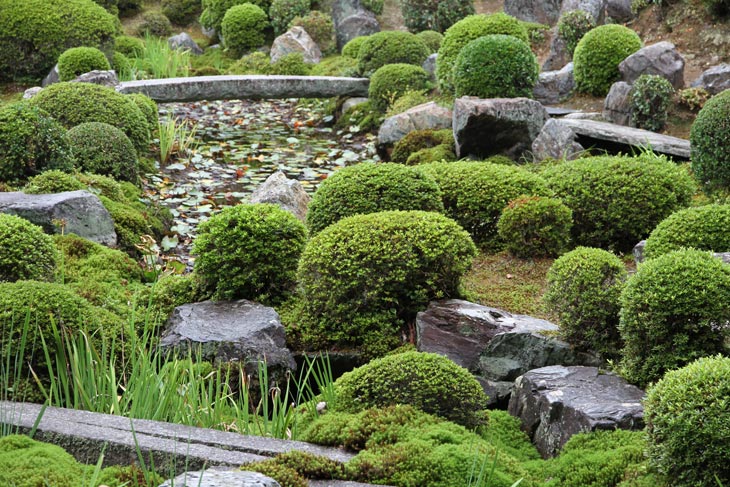 der östliche Teil des Hofes ist als üppiger Teichgarten gestaltet